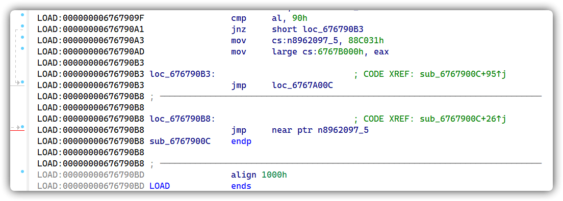 1 | LOAD:000000006767901E jz short sub_6767900C |